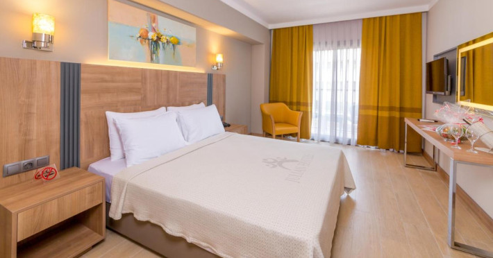 Localizare: Hotelul este situat la 90 km de aeroportul Dalaman, la 1,5 km de centrul orasului Marmaris si la 1,5 km de mare. Construit in anul 1996, ultima renovare in anul 2012, suprafata totala de 12 100 m2. Facilitati camere: Camerele sunt dotate cu cada, foehn, aer conditionat centralizat, televizor, telefon, minibar, ceainic electric (set de ceai si cafea), seif (contra cost), room service (contra cost), internet WiFi (contra cost). Facilitati hotel: restaurant principal, restaurant a la carte,3 baruri , 2 piscine exterioare, 2 tobogane, medic la solicitare, centru SPA & Wellness, coafor, curatatorie chimica, spalatorie, sala de conferinte (50 pers.), aerobic, aqua aerobic, tenis de masa, bocce, darts, program de animatie.Servicii contra cost: baie turceasca, sauna, masaj, biliard, mini-golf, internet WiFi (in lobby), internet cafe Facilitati pentru copii: piscina, loc de joaca, mini-club (4-12 ani) Plaja este publica, cu nisip/pietris, umbrele, sezlonguri, saltele - contra cost.Datorita dinamicitatii domeniului disponibilitatea ofertelor se modifica de la un moment la altul. De aceea ofertele sunt valabile in limita locurilor disponibile. Agentia nu este responsabila pentru eventualele neconcordante care pot aparea intre informatiile privind tarifele si alte detalii din site si informatiile primite in agentie. In aceste cazuri vor avea prioritate, intotdeauna, informatiile primite in agentie.