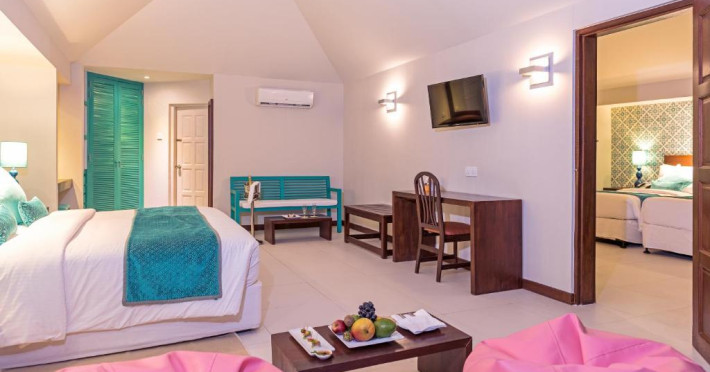 Vilele situate pe plajă sau deasupra apei au aer condiționat, TV cu canale prin cablu/satelit și minibar. Băile private sunt dotate cu uscător de păr și duș cu efect de ploaie, in aer liber.