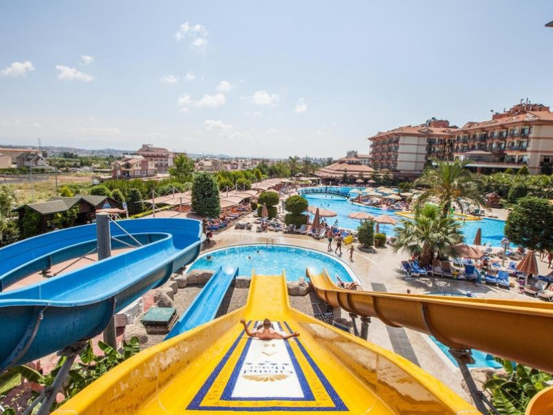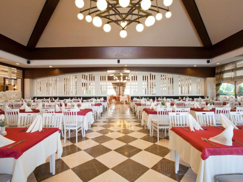 Facilitati hotel:Hotelul ofera oaspetilor sai urmatoarele facilitati: restaurant principal, 5 restaurante a la carte (turcesc, italian, chinezesc, pescaresc si barbeque), patiserie, inghetata, 6 baruri, piscina exterioara pentru adulti si copii, piscina cu 6 tobogane, piscina interioara, centru fitness, program de animatie, baie turceasca, sauna, SPA, aerobic, volei pe plaja, tenis de masa, darts, boccia, teren de tenis, sali de conferinta, internet wi-fi in lobby.