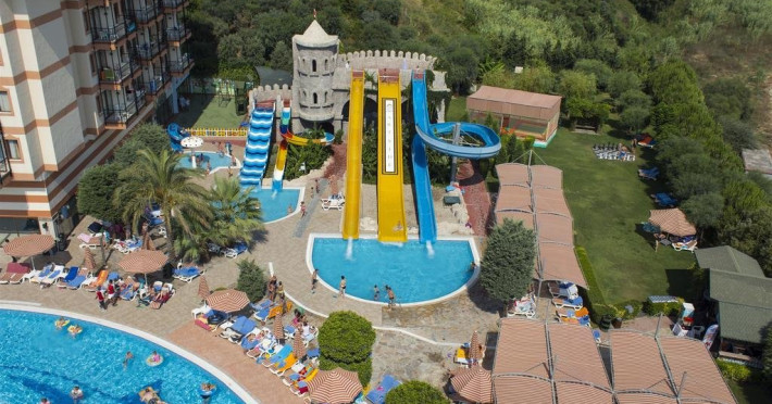 Facilitati hotel:Hotelul ofera oaspetilor sai urmatoarele facilitati: restaurant principal, 5 restaurante a la carte (turcesc, italian, chinezesc, pescaresc si barbeque), patiserie, inghetata, 6 baruri, piscina exterioara pentru adulti si copii, piscina cu 6 tobogane, piscina interioara, centru fitness, program de animatie, baie turceasca, sauna, SPA, aerobic, volei pe plaja, tenis de masa, darts, boccia, teren de tenis, sali de conferinta, internet wi-fi in lobby.