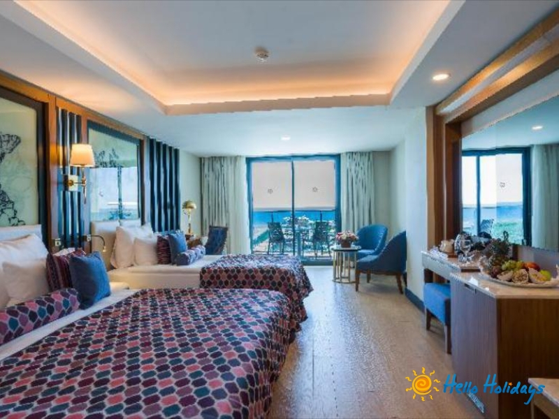 Adalya Elite Lara dispune de camere spatioase modern decorate, in culori calde și oferă o atmosferă prietenoasă. Pentru o relaxare deplina clientii pot alege sa mearga la baia turceasca sau la sauna. Hotelul se afla pe plaja de nisip si pietricele fine.Facilitati camere