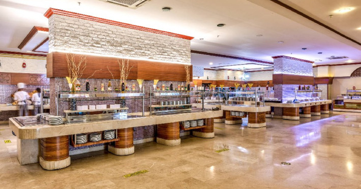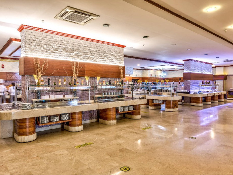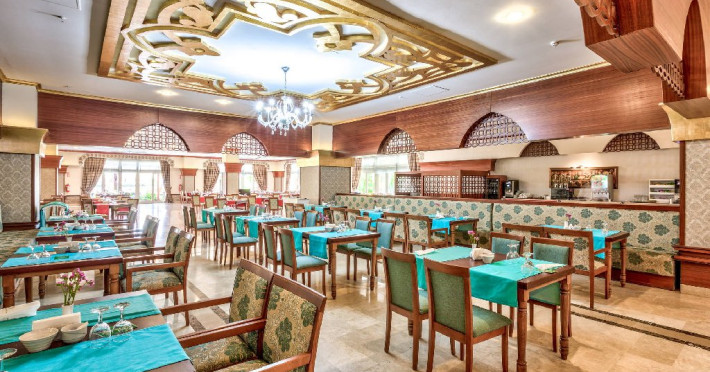 - 5 restaurante: principal si 4 a la carte (specialitati marine, barbeque, bucatarie otomana una gratuita pe sejur, steak house contra cost aprox. 25 EUR/pers.)