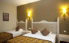 Camerele sunt dotate cu baie privata cu dus si cada, uscator de par, aer conditionat tip split, telefon direct, mini bar (realimentat zilnic cu apa si bauturi racoritoare, bere doar la sosire), fierbator, cafea si ceai, seif (contra cost), LCD TV cu programe prin satelit, conexiune WI-FI contra cost, balcon. Camerele au vedere partiala la mare, vedere frontala catre mare si vedere la gradina.