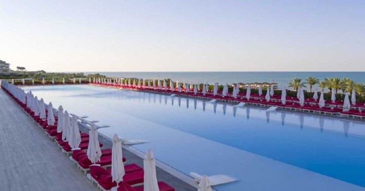 Descriere: Hotelul a fost construit in anul 2006 si renovat in 2014. Este construit pe o suprafata totala de 100.000 mp si dispune de 476 de camere repartizate pe 6 etaje si 68 de vile.Localizare: Hotelul este situat pe malul marii, la aproximativ 45 km de centrul orasului Antalya, la aproximativ 35 km de aeroport si la aproximativ 1 km de statiunea Belek.