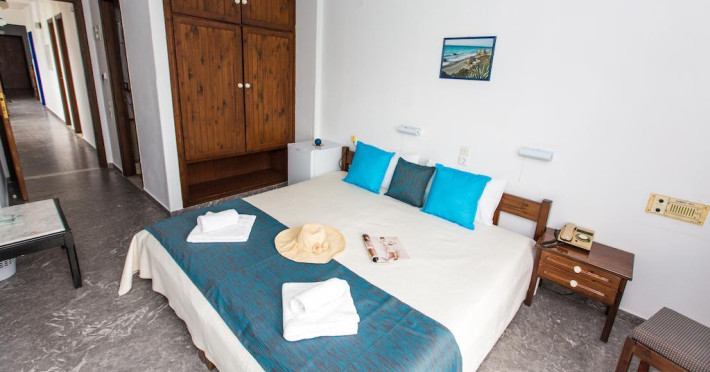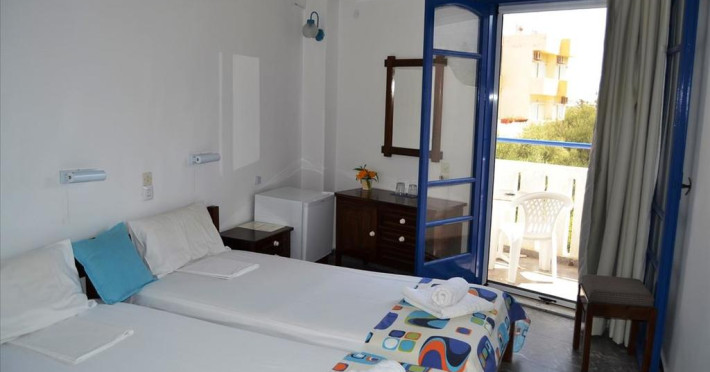 Sunt disponibile 20 camere. Unele camere au balcon, cu vedere la grădină, unde oaspeții se pot relaxa în compania celor dragi. Camerele confortabile de la Adamakis Hotel sunt dotate cu pardoseală de gresie/ marmură, aer condiționat și seif. În camere există baie cu cadă sau duș prevăzută cu foehn. Fiecare cameră dispune de cană-fierbător. Curățenia in cameră se face zilnic. Fiecare unitate de cazare are frigider. Proprietatea oferă camere pentru nefumători.
