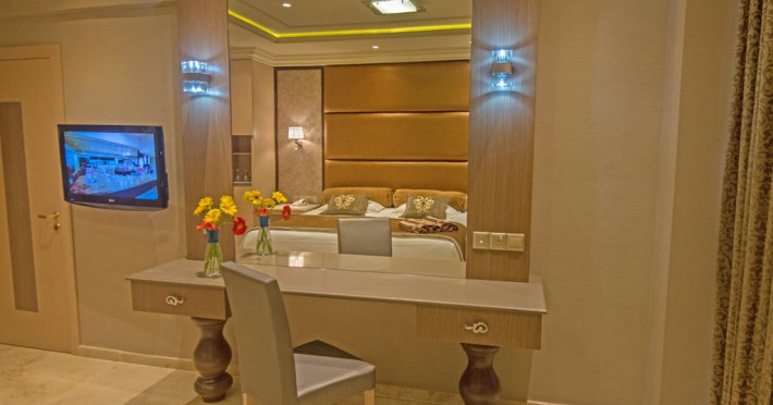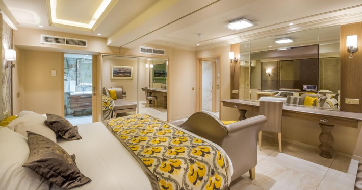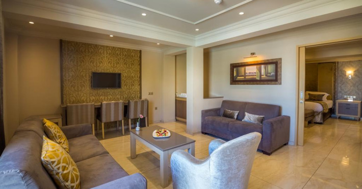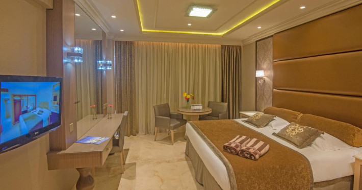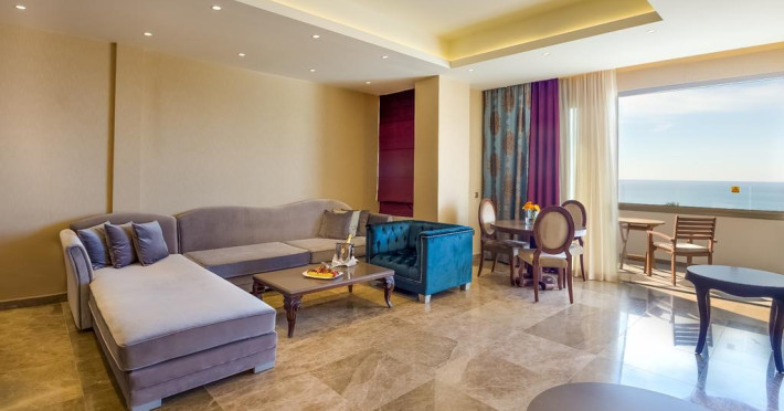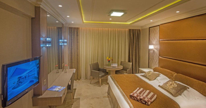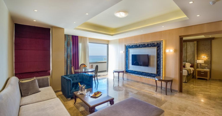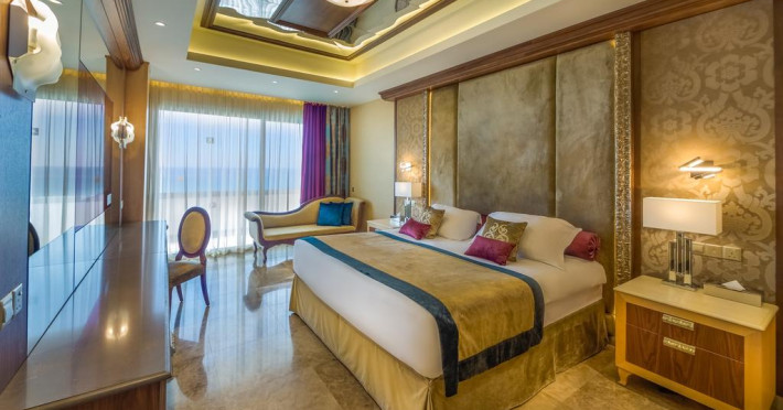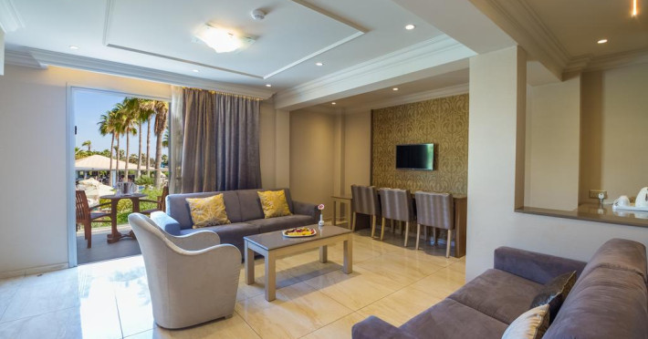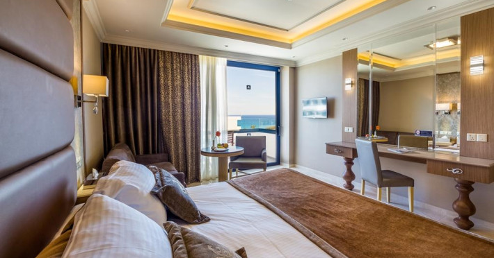Unele camere au balcon cu vedere la mare sau la piscină. În camere există baie cu cadă sau duș, foehn, articole de toaletă gratuite, precum și halate de baie și papuci. Fiecare cameră dispune de un aparat pentru preparare cafea sau ceai, cană-fierbător și minibar. Oaspeții pot solicita serviciul de room service pentru a servi masa sau diverse băuturi. Oaspeții au acces gratuit la serviciul Wi-fi în camere. Curățenia in cameră se face zilnic. Anumite camere au cadă cu hidromasaj care asigură un plus de confort și răsfăț. Proprietatea oferă camere pentru familie cu o suprafață mai mare și un număr mai mare de paturi față de cele standard. Se pot rezerva de asemenea camere pentru nefumători.