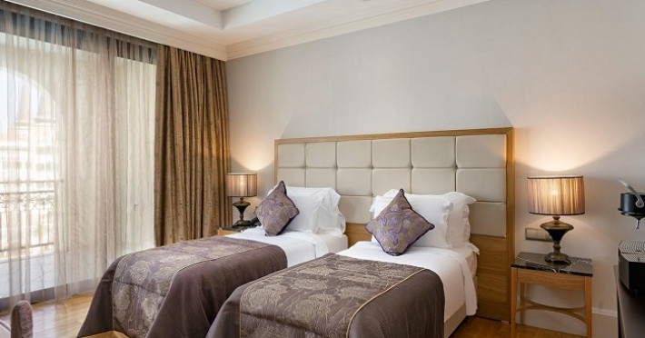 Hotelul are un numar total de 543 camere: camere Premium rooms (42 – 48mp, cladirea principala, un dormitor cu pat French + sofa bed, o baie, max.3pax), camere Deluxe rooms (61mp, cladirea principala, un dormitor cu spatiu de relaxare, o baie cu design Turkish, Jacuzzi, max.3pax), camere Family (55-60mp, cladirea principala, doua dormitoare cu usa intre ele, spatiu de relaxare, o baie, max.4pax), camere Premium Family (70mp, cladirea principala, doua dormitoare cu usa intre ele, spatiu de relaxare, doua bai, max.4pax+ 1inf), camere Pool Duplex suits (90mp, cladirea principala, la etaj un dormitor cu pat French si o baie, jos un dormitor cu paturi twin, o baie, spatiu de relaxare, X Large mini bar, room service, espresso coffee set, terasa spatioasa (22mp) cu acces direct la piscina, max.4pax+1chd+inf), camere Premium Pool Duplex Suits (110mp, cladirea principala, la etaj doua dormitoare cu usa intre ele si baie pentrufiecare dormitor, spatiu de relaxare si balcon, jos mini bucatarie, masa de servit cina, X large mini bar, room service, espresso coffee set, terasa (22mp) cu acces direct la piscina, max.5pax+ inf), camere Grand Duplex Suit (145mp, cladirea principala la etajul 5, la etaj un dormitor cu baie cu Jacuzzi, jos un dormitor cu paturi twin, o baie, spatiu de relaxare si balcon, X large mini bar, room service, espresso coffee set, max.5pax+inf).
