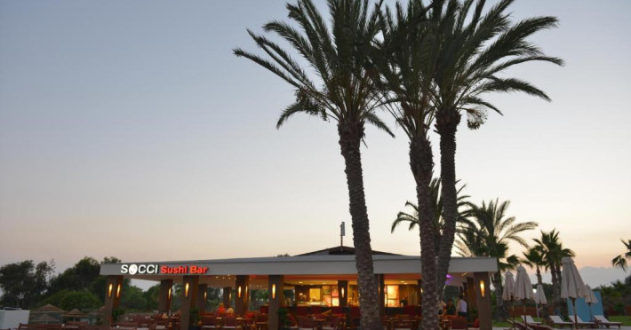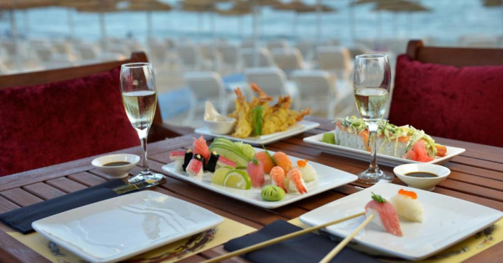 Opțiunile culinare includ Vala Beach Tavern amplasat in aer liber, barul-restaurant Vitaminas, accesibil și din piscină, Restaurantul Glasshouse Lounge de pe acoperiș, specializat in preparate fusion și Socci Sushi Bar, situat pe plajă. Micul dejun este servit la Restaurantul Atlantis. De asemenea, se oferă și un serviciu de plajă.