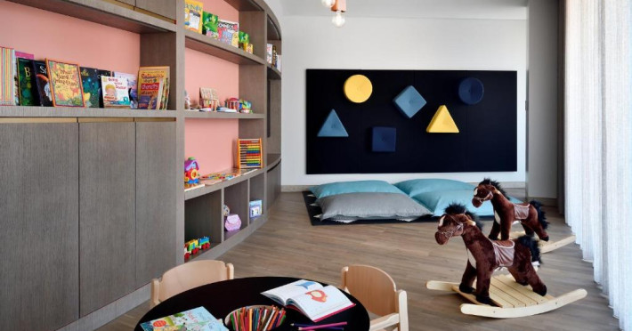 Copiii se pot distra la piscina special amenajată pentru ei.