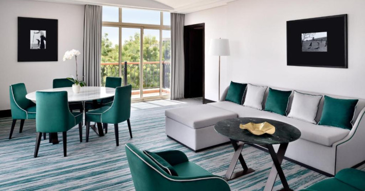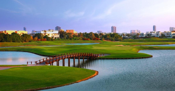 Acest complex de 5 stele din Dubai oferă camere de lux, cu acces gratuit la internet. Oferă un teren de golf Championship cu 18 găuri, un centru spa și o piscină in aer liber.