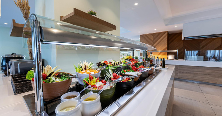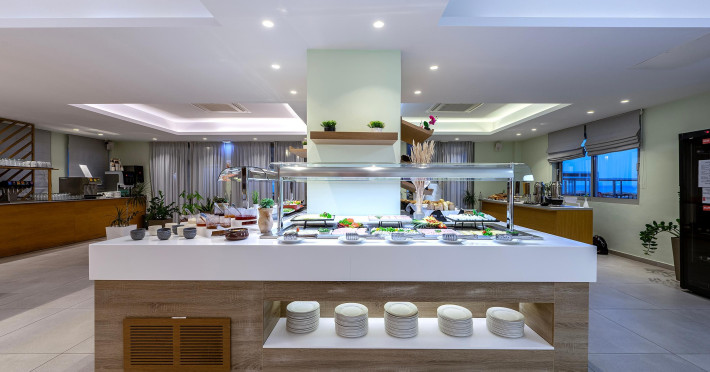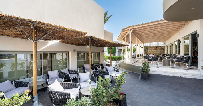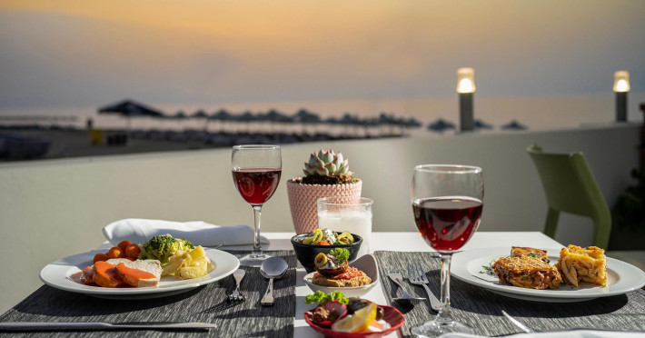 At the Main restaurant you can enjoy an amazing array of buffet choices for breakfast, lunch and dinner that includes a variety of beautifully presented culinary options with a different menu every day and live cooking from the professional chefs complementing the unique eating experience.Experience open-air dining, overlooking the island’s sunset colors reflecting on the sea, with a creative and mouthwatering menu, prepared with the utmost attention to detail.