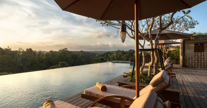 Cazare elegantă: Adiwana Bisma din Ubud oferă o experiență de resort de 5 stele cu acces exclusiv pentru adulți. Oaspeții se bucură de o piscină pe acoperiș, facilități spa, sală de fitness, terasă la soare și grădini luxuriante.