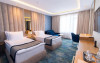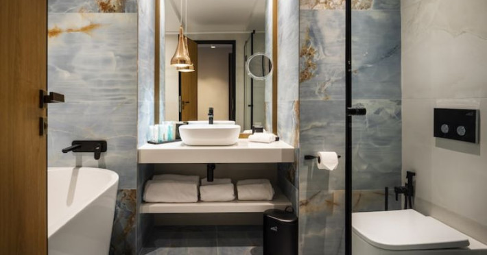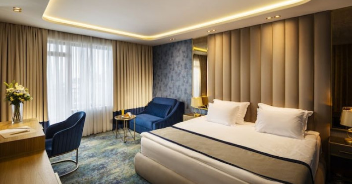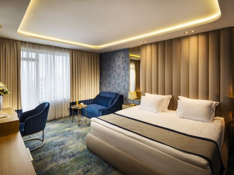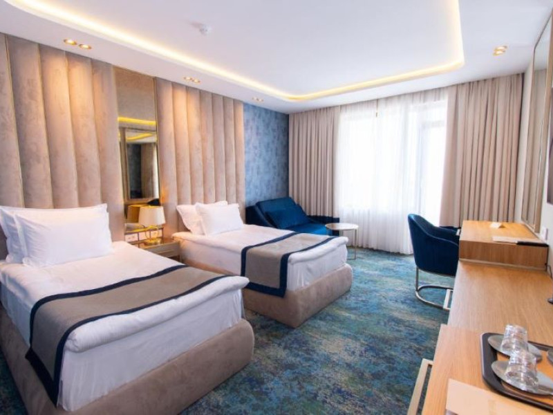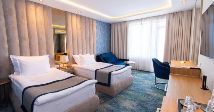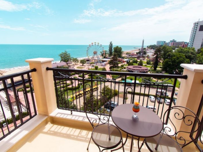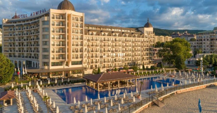 Admiral Hotel este așezat într-o poziție privilegiată, pe țărmul mării, oferind o locație cu adevărat remarcabilă și inegalabilă în inima complexului Nisipurile de Aur. Cu un design elegant și atent amenajat, hotelul emană o atmosferă de rafinament și confort, oferind o combinație minunată de spațiu și stil. Este apreciat pentru arhitectura sa distinctivă și pentru faptul că se află într-o zonă care inspiră frumusețe și relaxare.Facilități camere