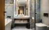 Fiecare cameră este echipată cu aer condiționat, televizor, telefon, minibar, seif, baie cu duș/cadă și balcon.