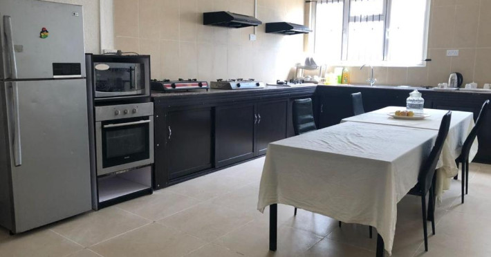 Bucătăria este dotată cu mașină de spălat vase, cuptor cu microunde și frigider, precum și aparat de cafea.