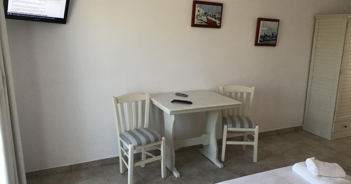 Sunt disponibile 18 camere. Camerele confortabile de la Adonis Hotel Apartments sunt dotate cu pardoseală de gresie/ marmură, aer condiționat, Tv și seif. În camere există baie cu duș. Camerele au balcon cu vedere la mare sau la oraș, unde oaspeții pot admira apusul sau răsăritul soarelui. Fiecare cameră dispune de minibar. Oaspeții pot solicita serviciul de room service pentru a servi masa sau diverse băuturi. Oaspeții au acces gratuit la serviciul Wi-fi în camere. Curățenia in cameră se face zilnic. Fiecare unitate de cazare include o chicinetă utilată cu frigider, plită de gătit și ustensile de bucătărie. De asemenea, este disponibilă o zonă de luat masa. Proprietatea oferă camere pentru familie cu o suprafață mai mare și un număr mai mare de paturi față de cele standard. Se pot rezerva de asemenea camere pentru nefumători.