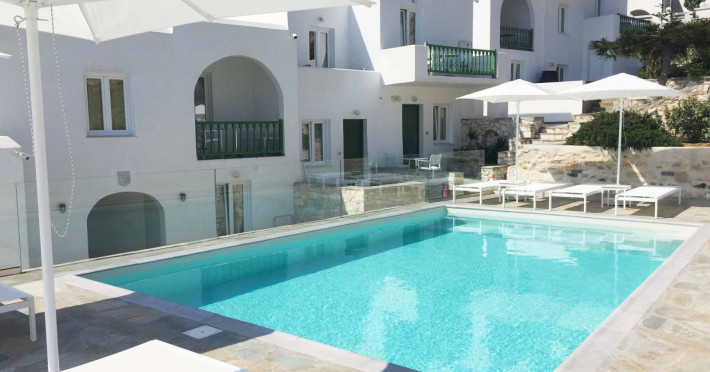 Situată în Naousa (Paros), această proprietate de 3 stele are acces imediat la plajă și oferă piscină exterioară, cu șezlonguri și umbrele de soare. Proprietatea are servicii de închirieri auto. Se oferă acces gratuit la internet Wi-fi în spațiile publice. Parcarea este posibilă pe stradă, în imediata apropiere a proprietății.