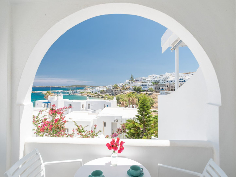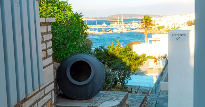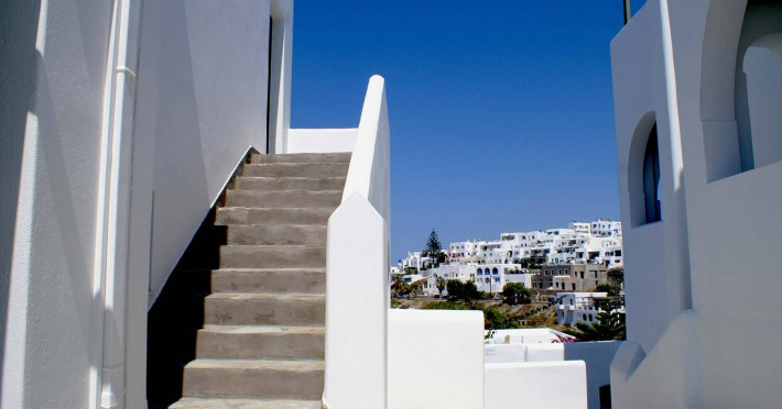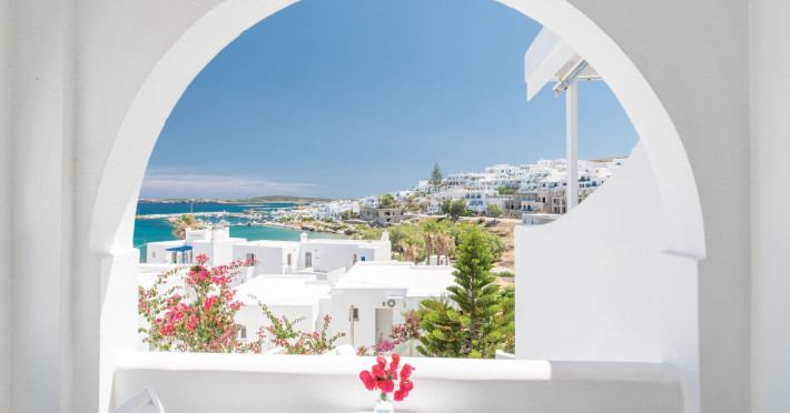 Adonis Hotel and Apartments is built in such a way that almost all rooms have view to the bay of Naoussa and the open sea beyond. In less than a minute you can jump into the cool waters of the Parian sea and it takes you just a few minutes to reach Naoussa with its picturesque, cosmopolitan atmosphere.