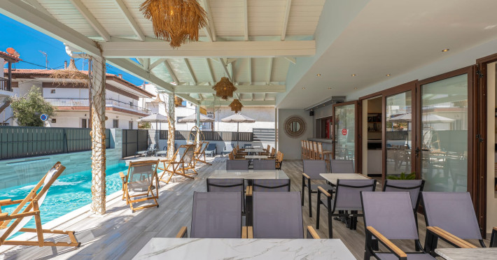 Our hotel, just 50 meters away from the beach is ready to offer you a relaxing staying. A breath away from the busy streets of Pefkochori we are able to provide a calm environment while still being in the heart of the village. Linen & towel change after 3 nights. Room refresh daily.Datorita dinamicitatii domeniului disponibilitatea ofertelor se modifica de la un moment la altul. De aceea ofertele sunt valabile in limita locurilor disponibile. Agentia nu este responsabila pentru eventualele neconcordante care pot aparea intre informatiile privind tarifele si alte detalii din site si informatiile primite in agentie. In aceste cazuri vor avea prioritate, intotdeauna, informatiile primite in agentie.