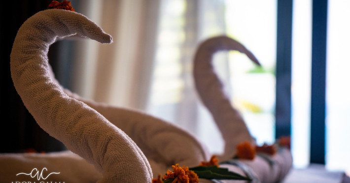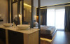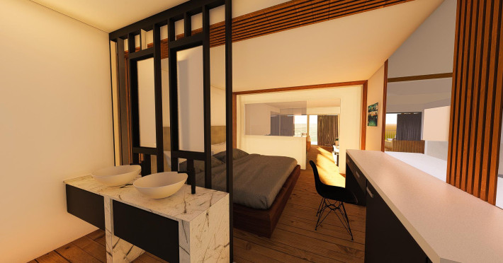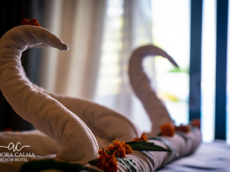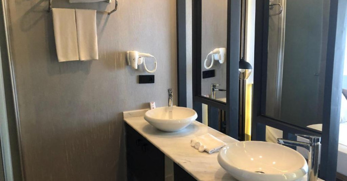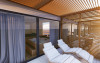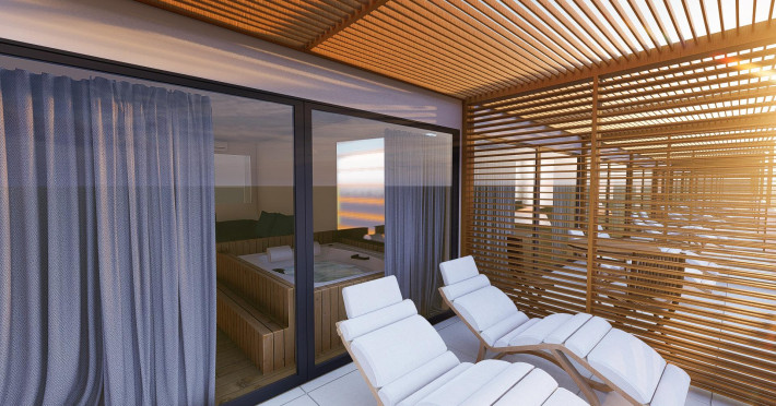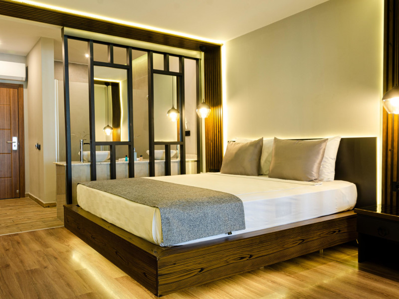 Aparatul de aer condiționat și o pardoseală încălzită ce poate fi ajustată individual creează o atmosferă plăcută în camere. Clienții vor găsi un cadou de bun venit. De pe balconul sau terasa privată a majorității camerelor clienții pot să se relaxeze de minune și să savureze vederea laterală spre mare. Și vederea spre mare creează o ambianță plăcută în multe spații de cazare. Camerele au un pat dublu sau un pat „King size”. Un minibar și, cu taxă, un seif stau de asemenea la dispoziție. Echiparea de bază cuprinde de asemenea și un frigider. Se garantează diverse posibilități de comunicare și divertisment prin echiparea cu un telefon, un televizor și WiFi (contra cost). În plus, clienții pot să apeleze la serviciul de pregătire a camerei pentru somn. Un sortiment de perne promite o stare de bine confortabilă. Băile dispun de un duș, de o cadă și de o cadă cu hidromasaj. Un uscător de păr și telefonul sunt disponibile pentru folosința zilnică.