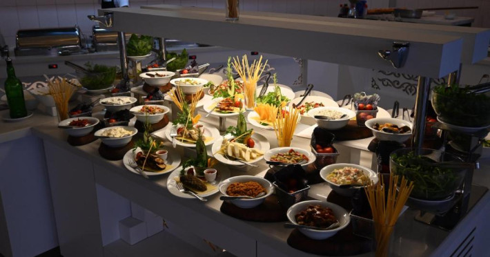 Locurile unde se poate lua masa cuprind un restaurant, o sală de mese, un bar și un pub. Se oferă spre rezervare regim all inclusive. Printre avantajele unui sejur all inclusive se numără diverse oferte, ca de exemplu o paletă diversă de băuturi alcoolice și nealcoolice, precum și minibar. Se oferă micul dejun, prânzul și cina.