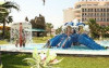Descriere: construit in anul 1992 ultima renovare in 2010 cu o suprafata de 116.000 mp .Dotari camere: hotelul dispune de 520 camere repartizate astfel : 260 camere in cele 2 cladiri principale, suprafata intre 26-36mp ,dotate cu balcon , tv satelit , aer conditionat (centralizat ) , mini bar , mocheta , seif, baie complet utilata . Capacitate maxima cazare 2 adl + 2 copii , 3 adl . 240 camere de tip club room repartizate in cele 10 cladiri bungalow, suprafata de 19 mp , baie cu dus , tv satelit ,mini bar , aer conditionat ( centralizat ). Capacitate maxima 2 adl + 2 copii sau 3 adl.