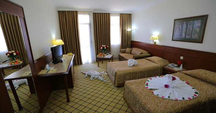 Sunt disponibile 507 camere. Unele camere au balcon cu vedere la mare, unde oaspeții pot admira apusul sau răsăritul soarelui. Oaspeții au la dispoziție serviciul de room service pentru a servi masa sau diverse băuturi. Camerele de la Adora Resort Hotel sunt dotate cu aer condiționat, Tv cu canale prin satelit și seif. În camere există baie cu cadă sau duș prevăzută cu foehn. Curățenia in cameră se face zilnic. Proprietatea oferă camere pentru familie cu o suprafață mai mare și un număr mai mare de paturi față de cele standard. Se pot rezerva de asemenea camere pentru nefumători.