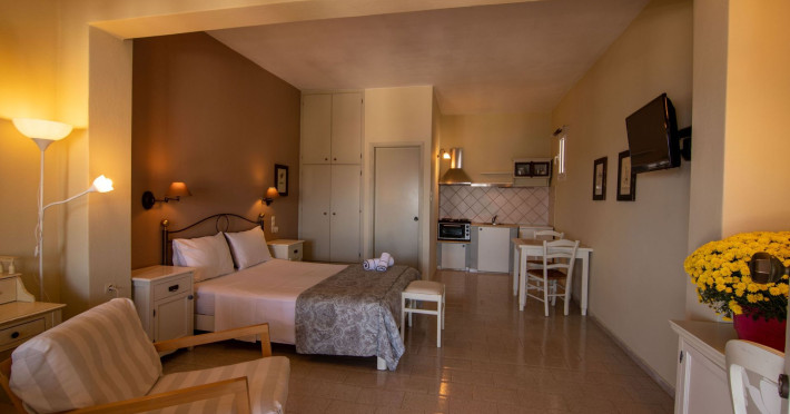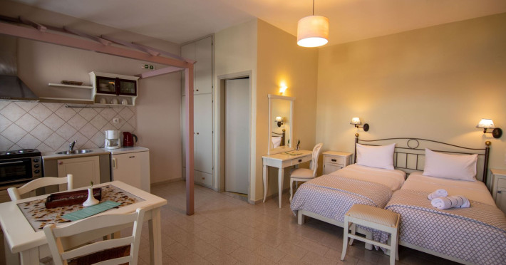 Adrakos Apartments (Adults Only) is a unique apartments complex, perched high on the mountainside, halfway between Agios Nikolaos to Elounda. The apartments and studios have a spectacular panoramic view of the Bay of Elounda and the intriguing island of Spinalonga. They also include a TV, air conditioning and a kitchenette with a mini oven and fridge. The kitchenettes are equipped with cooking utensils, whereas all balconies of the studios and apartments offer outdoor furniture, so you can enjoy the sunset and surrounding view of Elounda. Terrassa, our on-site restaurant, boasts magnificent sea views and serves tasty & creative Greek and Mediterranean cuisine. You can use our lovely swimming pool to relax and watch the magnificent gulf of Elounda, while enjoying a drink from the bar! In our massage room you can relax with various treatments. Adrakos Apartments is situated just 5km from Agios Nikolaos and 3km from Elounda port. Nikos Kazantzakis international airport of Heraklion is about 75 km away. We can arrange a private transfer for you upon request.Datorita dinamicitatii domeniului disponibilitatea ofertelor se modifica de la un moment la altul. De aceea ofertele sunt valabile in limita locurilor disponibile. Agentia nu este responsabila pentru eventualele neconcordante care pot aparea intre informatiile privind tarifele si alte detalii din site si informatiile primite in agentie. In aceste cazuri vor avea prioritate, intotdeauna, informatiile primite in agentie.