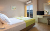 Unele camere au balcon cu vedere la mare sau la piscină. Camerele confortabile de la Adriatica au pardoseală de gresie/ marmură, aer condiționat, Tv cu canale prin satelit și seif. În camere există baie cu cadă sau duș ce are în dotare foehn și articole de toaletă gratuite. Fiecare cameră oferă cană-fierbător și mașină pentru prepare cafea sau ceai. Oaspeții pot solicita serviciul de room service pentru a servi masa sau diverse băuturi. Oaspeții au acces gratuit la serviciul Wi-fi în camere. Curățenia in cameră se face zilnic. Fiecare unitate de cazare include o chicinetă utilată cu frigider. De asemenea, este disponibilă o zonă de luat masa. Proprietatea oferă camere pentru familie cu o suprafață mai mare și un număr mai mare de paturi față de cele standard. Se pot rezerva de asemenea camere pentru nefumători.