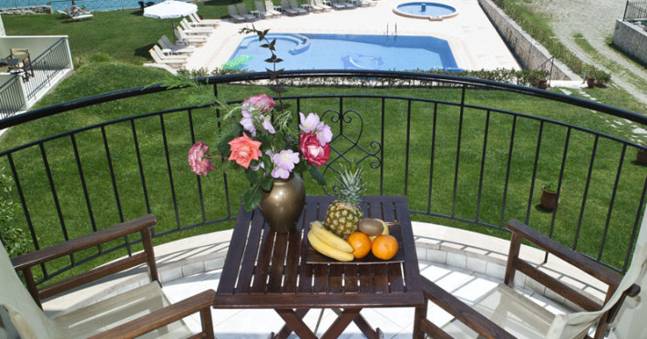 Complexul este compus din 14 studiouri si 5 apartamente intr-o gradina de 2000 mp. Studiourile au 25 mp si sunt dotate cu TV prin satelit, kitchenetta complet utilata, cabina de dus, uscator de par, saltele ortopedice si asternuturi din bumbac 100%, aer conditionat, balcon privat cu vedere spre mare.