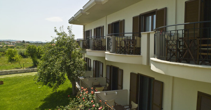 Studiourile sunt un complex ospitalier, care a fost construit in 2004. Compus din trei cladiri diferite, complexul combina stilul modern cu pete arhitecturale traditionale, decorate cu piatra locala de Afytos, oferind o vedere panoramica a golfului Toroneos si peninsulei Sithonia.Localizare