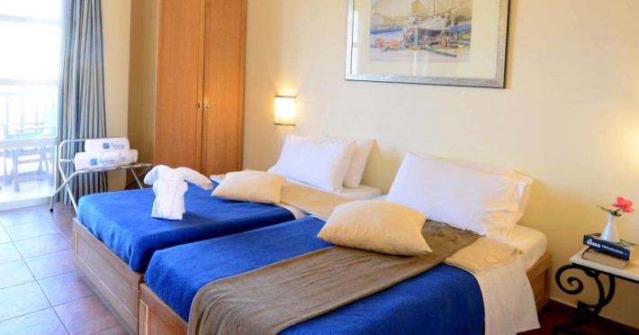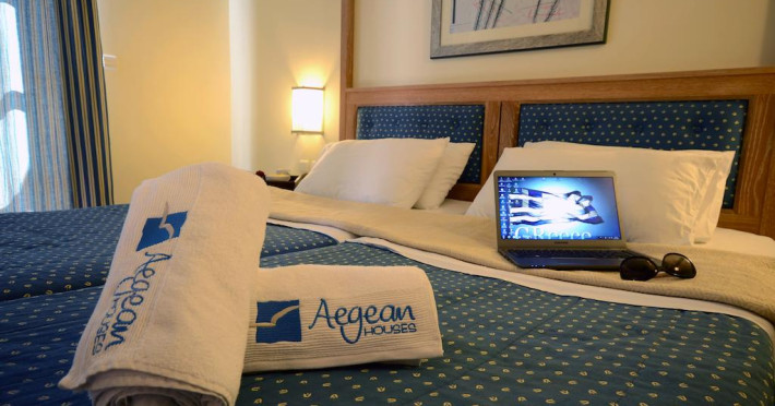 Sunt disponibile 55 camere. Camerele luminoase de la Aegean Houses sunt dotate cu aer condiționat și Tv cu canale prin satelit. Oaspeții au la dispoziție serviciul de room service pentru a servi masa sau diverse băuturi. În camere există baie cu cadă sau duș prevăzută cu foehn. Camerele au balcon cu masă și scaune unde pot fi petrecute momente de relaxare. Oaspeții au acces gratuit la serviciul Wi-fi în camere. Curățenia in cameră se face zilnic. În fiecare unitate de cazare există o bucătărie utilată, inclusiv cu ustensile de bucătărie. Proprietatea oferă camere pentru familie cu o suprafață mai mare și un număr mai mare de paturi față de cele standard. Se pot rezerva de asemenea camere pentru nefumători.
