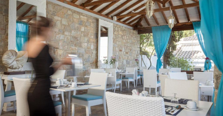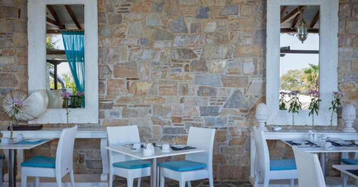 Oaspeții de la Aegean Suites se pot bucura de mese gourmet pe terasa hotelului; Alături de mancăruri internaționale, sunt oferite specialități grecești. Restaurantul de langă piscină este deschis zilnic pentru pranzuri ușoare.