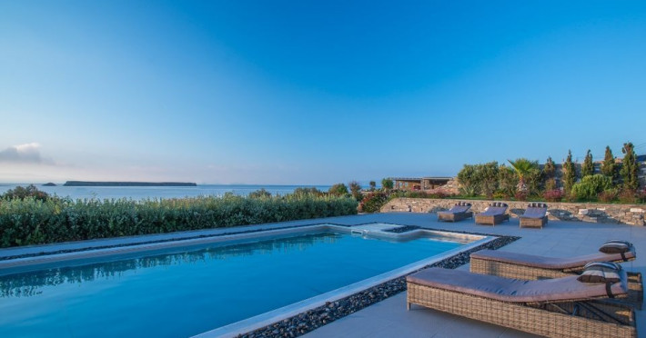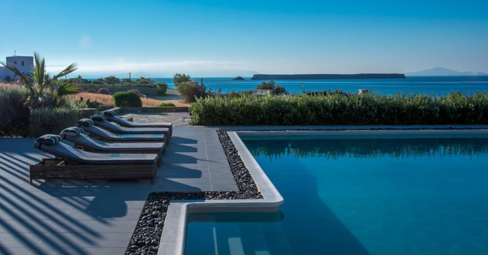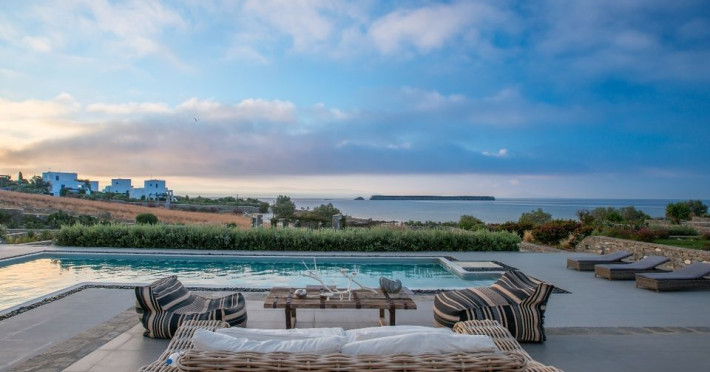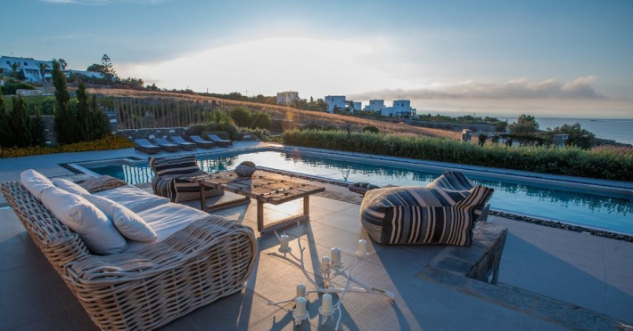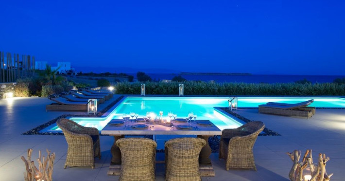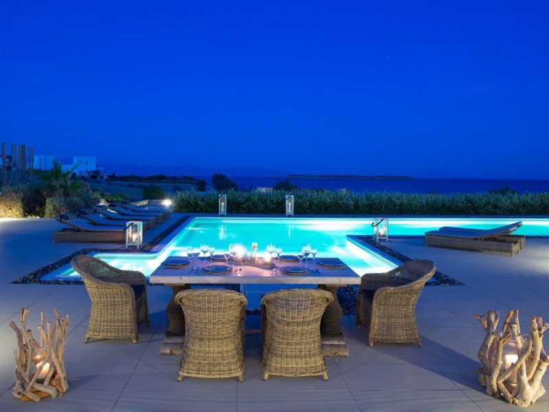 A refuge where design and relaxation are wonderfully combined, Aelia Paros Villas, is the perfect choice for families and group of couples. Perfectly located over bay, just 19km from Town center, where the vivid pulse is beating; Chryssi Akti is the ideal destination also for water and wind sports lovers. Paros Luxury Villas is a group of four private rental villas, located at the east side of Paros, a few minutes walk from the beautiful sandy beach of Golden Beach. Built on 11.500 square meters ground, the 4 building compound surrounds three large swimming pools. Designed and built following the Cycladic architecture the villas blend harmonically with the natural environment.The perfect destination with seductive view of Cycladic landscape and the beauty of the Aegean Sea. An oasis of peace and luxury just a breath away from the cosmopolitan pulse of Dryos. A refuge where design and relaxation are wonderfully combined, Aelia Paros Villas, is the perfect choice for families and group of couples.Datorita dinamicitatii domeniului disponibilitatea ofertelor se modifica de la un moment la altul. De aceea ofertele sunt valabile in limita locurilor disponibile. Agentia nu este responsabila pentru eventualele neconcordante care pot aparea intre informatiile privind tarifele si alte detalii din site si informatiile primite in agentie. In aceste cazuri vor avea prioritate, intotdeauna, informatiile primite in agentie.