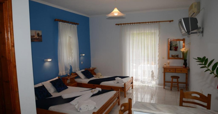 Descriere Aelia Studios: proprietate moderna, frumos intretinuta, alcatuita din 7 studiouri, inconjurat de vegetatie luxurianta.Localizare Aelia Studios: studiourile Aelia sunt localizate la 5 minute plimbare de plaja Laganas, la 3 km de port, la 10 minute plimbare de centrul Laganas, unde se afla restaurante, magazine si baruri.