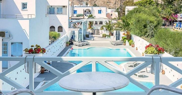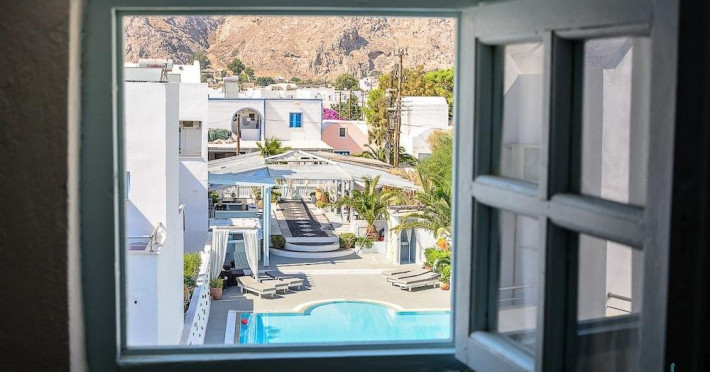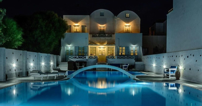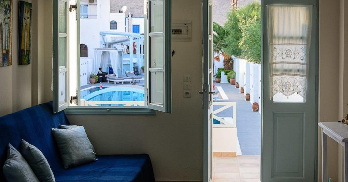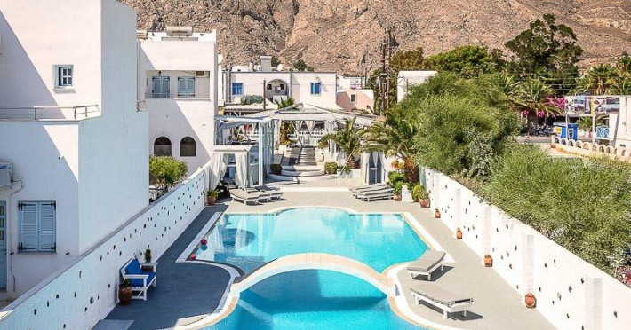Property Desc: Property Location When you stay at Aeolis Santorini in Santorini, you'll be near the beach, a 1-minute drive from Perissa Beach and 8 minutes from Santorini Caldera. This 4-star guesthouse is 7.4 mi (12 km) from Kamari Beach and 1.2 mi (2 km) from Perivolos Beach. Rooms Make yourself at home in one of the 5 air-conditioned rooms featuring flat-screen televisions. Rooms have private balconies or patios. Complimentary wireless Internet access keeps you connected, and satellite programming is available for your entertainment. Private bathrooms with showers feature rainfall showerheads and complimentary toiletries. Amenities Pamper yourself with onsite massages or enjoy recreation amenities such as an outdoor pool. Dining Wrap up your day with a drink at the bar/lounge. Cooked-to-order breakfasts are available daily from 8:00 AM to 11:00 AM for a fee. Business, Other Amenities The front desk is staffed during limited hours. Attractions Distances are displayed to the nearest 0.1 mile and kilometer. Aegean Islands - 0.1 km / 0.1 mi Perissa Beach - 0.5 km / 0.3 mi Museum of Minerals and Fossils - 0.7 km / 0.4 mi Perivolos Beach - 1.8 km / 1.1 mi Kastelli Emporio - 2.4 km / 1.5 mi Ancient Thira - 2.9 km / 1.8 mi Kamari Beach - 4.1 km / 2.6 mi Santorini Arts Factory - 4.6 km / 2.9 mi Vlychada Beach - 4.7 km / 2.9 mi Tomato Industrial Museum - 4.7 km / 2.9 mi Gavalas Vineyard - 5.5 km / 3.4 mi Boutari Winery - 5.8 km / 3.6 mi Eros Beach - 5.9 km / 3.7 mi Antoniou Winery - 6 km / 3.7 mi Venetsanos Winery - 6.6 km / 4.1 mi The preferred airport for Aeolis Santorini is Santorini National Airport (JTR) - 13 km / 8.1 mi House Rules Children welcome No pets Smoking permitted Spoken Languagess Greek English Know Before You Go: Cash transactions at this property cannot exceed EUR 500, due to national regulations. For further details, please contact the property using information in the booking confirmation. Reservations are required for massage services. Reservations can be made by contacting the guesthouse prior to arrival, using the contact information on the booking confirmation. This property advises that enhanced cleaning and guest safety measures are currently in place. Disinfectant is used to clean the property; commonly-touched surfaces are cleaned with disinfectant between stays; bed sheets and towels are laundered at a temperature of at least 60 C/140 F. Staff at the property wear personal protective equipment; periodic temperature checks are conducted on staff; temperature checks are available to guests; guests are provided with hand sanitizer. Fees: The following fees and deposits are charged by the property at time of service, check-in, or check-out. Fee for cooked-to-order breakfast: EUR 10 for adults and EUR 10 for children (approximately) The above list may not be comprehensive. Fees and deposits may not include tax and are subject to change. Mandatory Fees and Taxes: You'll be asked to pay the following charges at the property: Cash Breakage deposit: EUR 750 per stay A tax is imposed by the city: EUR 0.50 per accommodation, per night We have included all charges provided to us by the property. Checkin Instructions: Extra-person charges may apply and vary depending on property policy Government-issued photo identification and a credit card, debit card, or cash deposit may be required at check-in for incidental charges Special requests are subject to availability upon check-in and may incur additional charges; special requests cannot be guaranteed Guests must contact this property in advance to reserve cribs/infant beds This property accepts credit cards and cash Please note that cultural norms and guest policies may differ by country and by property; the policies listed are provided by the property Special Checkin Instructions: The front desk is open daily from 8:00 AM - midnight. To make arrangements for check-in please contact the property at least 24 hours before arrival using the information on the booking confirmation. If you are planning to arrive after midnight please contact the property in advance using the information on the booking confirmation. Guests must contact the property in advance for check-in instructions. Front desk staff will greet guests on arrival. This property's breakage deposit is required for House bookings only. Checkin Time: 3:30 PM Checkin End Time: midnight Checkin Minimum Age: 18 Checkout Time: 11:30 AMProperty Desc: Property Location When you stay at Aeolis Santorini in Santorini, you'll be near the beach, a 1-minute drive from Perissa Beach and 8 minutes from Santorini Caldera. This 4-star guesthouse is 7.4 mi (12 km) from Kamari Beach and 1.2 mi (2 km) from Perivolos Beach. Rooms Make yourself at home in one of the 5 air-conditioned rooms featuring flat-screen televisions. Rooms have private balconies or patios. Complimentary wireless Internet access keeps you connected, and satellite programming is available for your entertainment. Private bathrooms with showers feature rainfall showerheads and complimentary toiletries. Amenities Pamper yourself with onsite massages or enjoy recreation amenities such as an outdoor pool. Dining Wrap up your day with a drink at the bar/lounge. Cooked-to-order breakfasts are available daily from 8:00 AM to 11:00 AM for a fee. Business, Other Amenities The front desk is staffed during limited hours. Attractions Distances are displayed to the nearest 0.1 mile and kilometer. Aegean Islands - 0.1 km / 0.1 mi Perissa Beach - 0.5 km / 0.3 mi Museum of Minerals and Fossils - 0.7 km / 0.4 mi Perivolos Beach - 1.8 km / 1.1 mi Kastelli Emporio - 2.4 km / 1.5 mi Ancient Thira - 2.9 km / 1.8 mi Kamari Beach - 4.1 km / 2.6 mi Santorini Arts Factory - 4.6 km / 2.9 mi Vlychada Beach - 4.7 km / 2.9 mi Tomato Industrial Museum - 4.7 km / 2.9 mi Gavalas Vineyard - 5.5 km / 3.4 mi Boutari Winery - 5.8 km / 3.6 mi Eros Beach - 5.9 km / 3.7 mi Antoniou Winery - 6 km / 3.7 mi Venetsanos Winery - 6.6 km / 4.1 mi The preferred airp