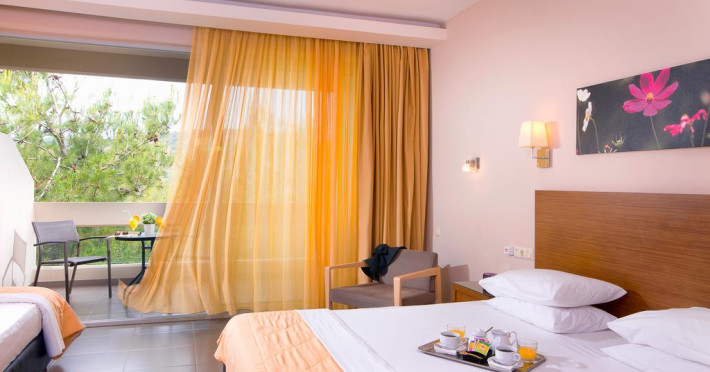 Sunt disponibile 45 camere. Camerele confortabile de la Aeolis Thassos Palace au pardoseală de gresie/ marmură, aer condiționat, Tv cu canale prin satelit și seif. Unele camere au balcon cu vedere la munte. Fiecare cameră dispune de un aparat pentru preparare cafea sau ceai. Oaspeții pot solicita serviciul de room service pentru a servi masa sau diverse băuturi. În camere există baie cu cadă sau duș ce are în dotare foehn și articole de toaletă gratuite. Oaspeții au acces gratuit la serviciul Wi-fi în camere. Curățenia in cameră se face zilnic. Toate camerele spațioase de la Aeolis Thassos Palace au zonă de relaxare cu canapea, ceea ce oferă un plus de confort. Fiecare unitate de cazare are frigider. Proprietatea oferă camere pentru familie cu o suprafață mai mare și un număr mai mare de paturi față de cele standard.