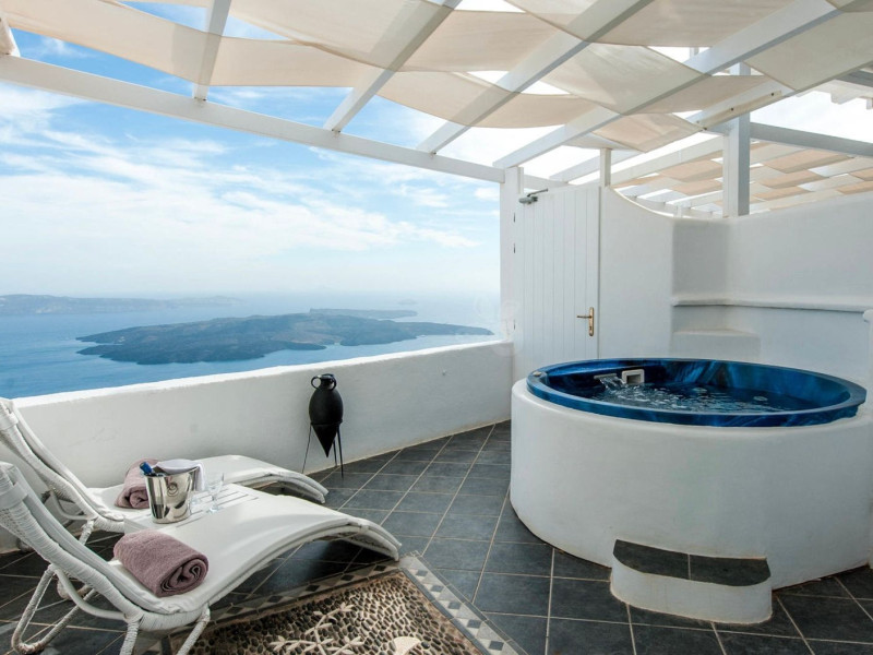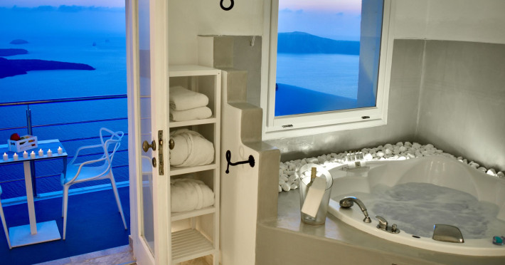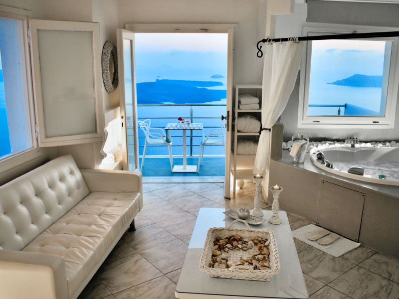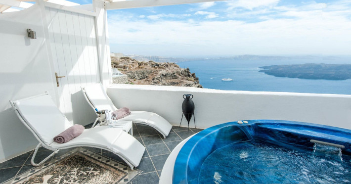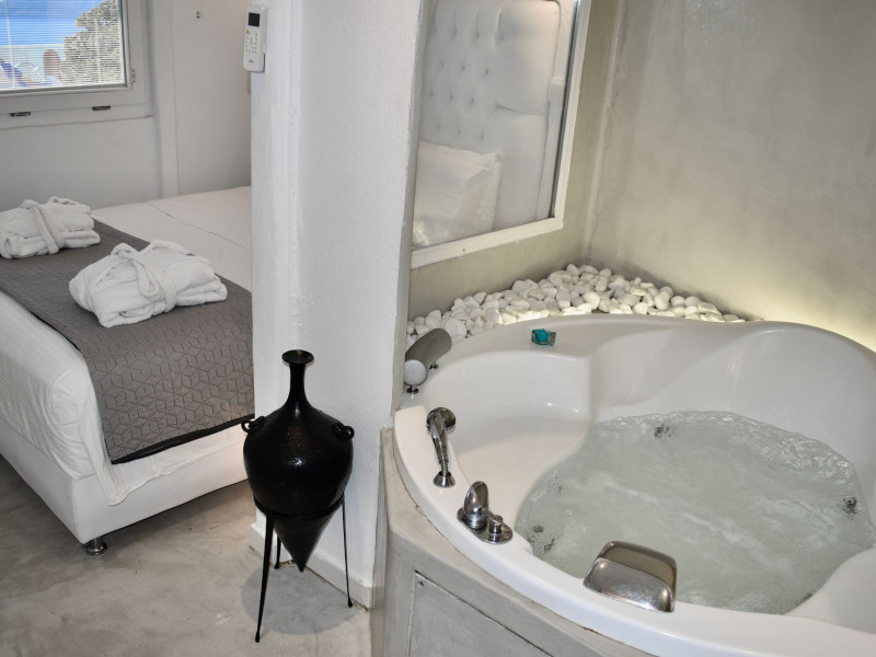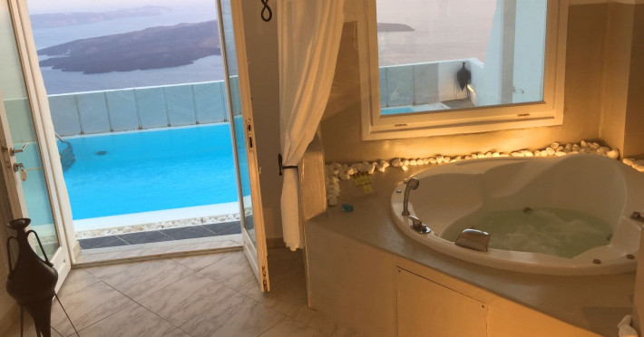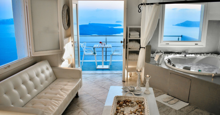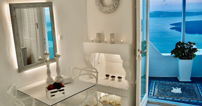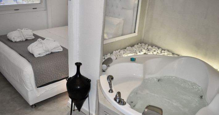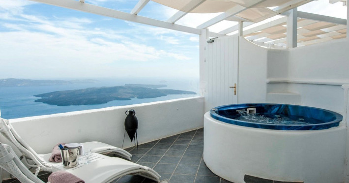 Aeolos Art & Eco Suites Adults Only is situated on top of the cliffs of the Caldera on Santorini island, facing a breathtaking view of the sea volcano and the sunset. The self catering cave studios & suites are built according to the Aegean architectural style, have adopted the basic principles of ecotourism, and applied extra health and safety measures. The property is located at the picturesque village of Imerovigli, on an altitude of 330 m. very close to the center of the capital city Fira, offering wellness by the outdoor hotel’s pool or at you studio's indoor or outdoor private Jetted Tub overlooking the sea view, for a memorable vacation in tranquility and relaxation.Aeolos Art & Eco Suites Adults Only is situated on top of the cliffs of the Caldera on Santorini island, facing a breathtaking view of the sea volcano and the sunset. The self catering cave studios & suites are built according to the Aegean architectural style, have adopted the basic principles of ecotourism, and applied extra health and safety measures. The property is located at the picturesque village of Imerovigli, on an altitude of 330 m. very close to the center of the capital city Fira, offering wellness by the outdoor hotel’s pool or at you studio's indoor or outdoor private Jetted Tub overlooking the sea view, for a memorable vacation in tranquility and relaxation.