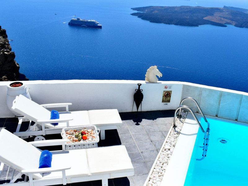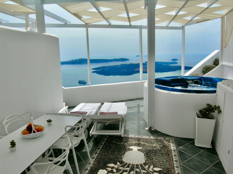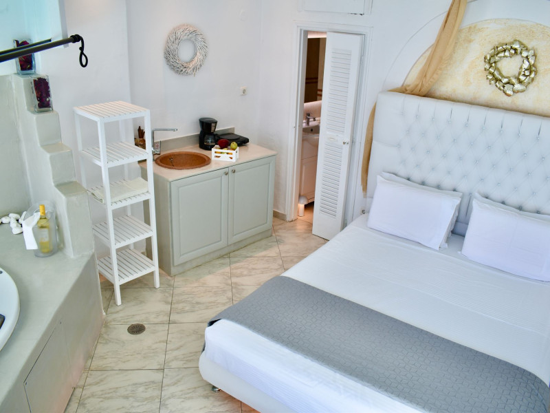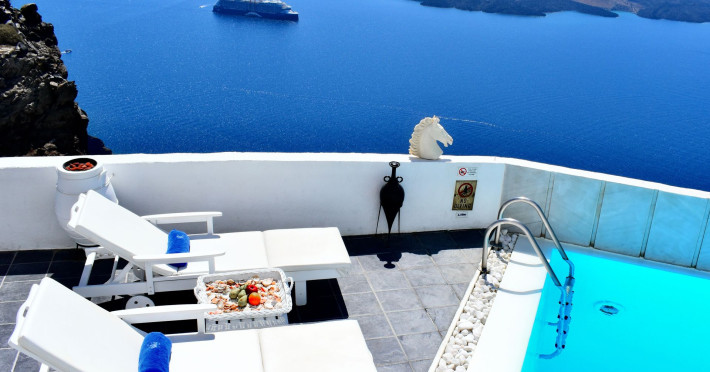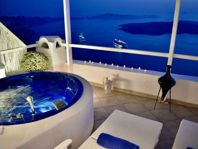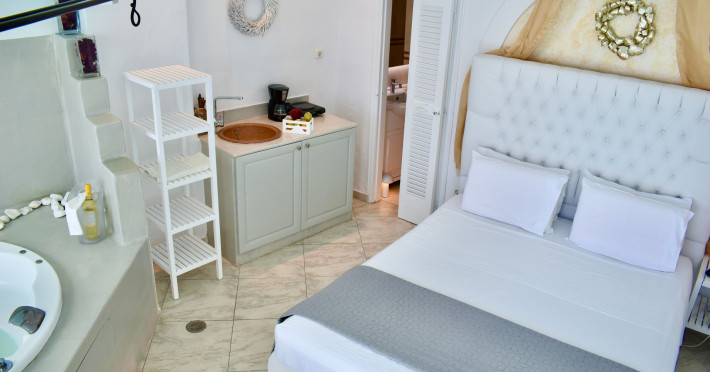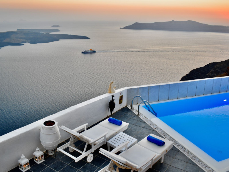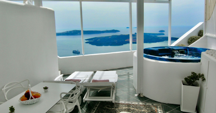 Aeolos Art & Eco Suites Adults Only is situated on top of the cliffs of the Caldera on Santorini island, facing a breathtaking view of the sea volcano and the sunset. The self catering cave studios & suites are built according to the Aegean architectural style, have adopted the basic principles of ecotourism, and applied extra health and safety measures. The property is located at the picturesque village of Imerovigli, on an altitude of 330 m. very close to the center of the capital city Fira, offering wellness by the outdoor hotel’s pool or at you studio's indoor or outdoor private Jetted Tub overlooking the sea view, for a memorable vacation in tranquility and relaxation.Aeolos Art & Eco Suites Adults Only is situated on top of the cliffs of the Caldera on Santorini island, facing a breathtaking view of the sea volcano and the sunset. The self catering cave studios & suites are built according to the Aegean architectural style, have adopted the basic principles of ecotourism, and applied extra health and safety measures. The property is located at the picturesque village of Imerovigli, on an altitude of 330 m. very close to the center of the capital city Fira, offering wellness by the outdoor hotel’s pool or at you studio's indoor or outdoor private Jetted Tub overlooking the sea view, for a memorable vacation in tranquility and relaxation.