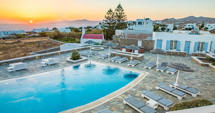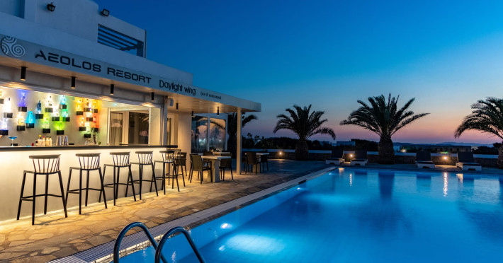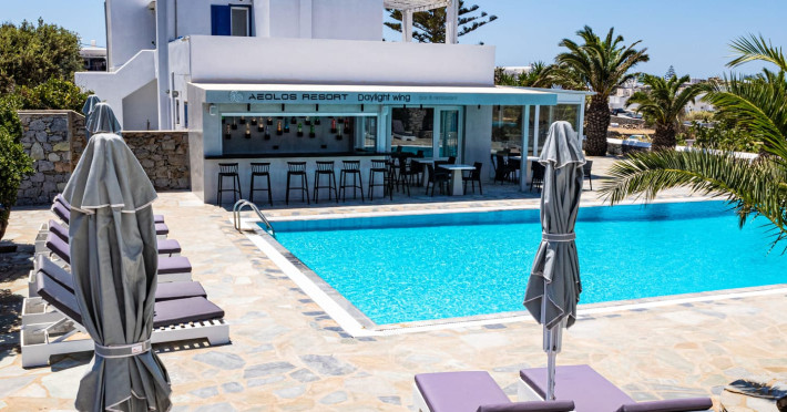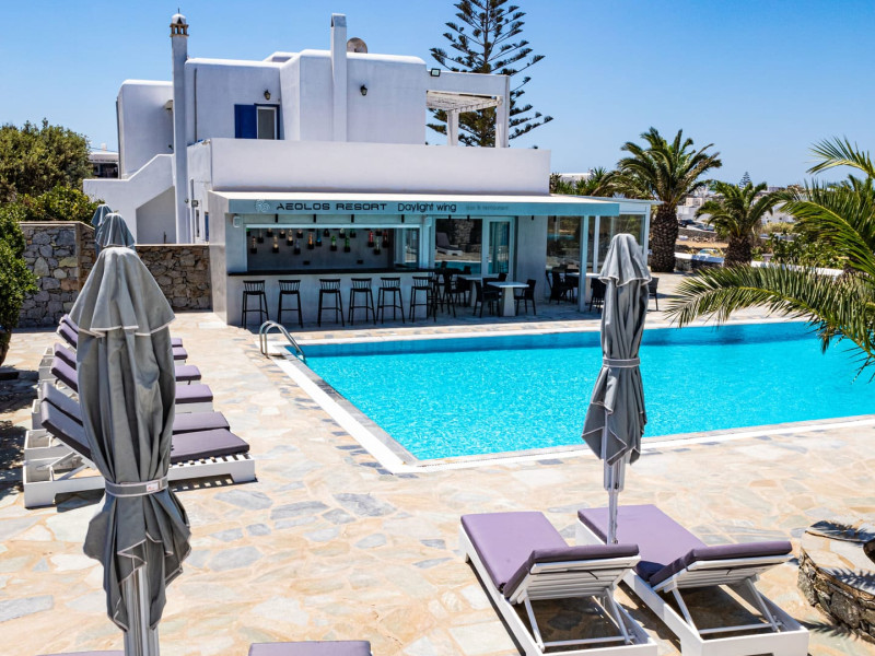 The Aeolos Resort invites you to experience the cosmopolitian lifestyle that personifies Mykonos Island. In our small but luxurious environment, let us overwhelm you with a level of service and hospitiality seldom found in an intimate boutique hotel.Located a mere 800m from Mykonos City Center, the staff at Aeolos Hotel consistently strives to deliver high value for money spent. Through friendly service, attention to detail, elegant accommodations and an abundance of amentities, the Aeolos Hotel satisfies on every level.Whether you choose to sip refreshing cocktails at the poolside, enjoy our relaxing jacuzzi, or use the free wi-fi internet access, Aeolos Hotel offers every possible service to ensure your romantic escapade or family getaway is a truly rejuvenating experience.Our spacious and airy rooms are furnished with modern decor and comfortable touches, balconies overlook the lovely gardens and the relaxing pool and the beds are designed to offer nights of restful sleep. Rooms feature satellite TV, music, telephone, air conditioning, refrigerator, hair dryer and safety deposit boxes.Come for a stay at Aeolos Hotel and you will be a guest for life. Join the chorus of guests who have found that a stay at our hotel redefines a visit to Mykonos.T.B.R.N : 11441012Α0126800The Aeolos Resort invites you to experience the cosmopolitian lifestyle that personifies Mykonos Island. In our small but luxurious environment, let us overwhelm you with a level of service and hospitiality seldom found in an intimate boutique hotel.Located a mere 800m from Mykonos City Center, the staff at Aeolos Hotel consistently strives to deliver high value for money spent. Through friendly service, attention to detail, elegant accommodations and an abundance of amentities, the Aeolos Hotel satisfies on every level.Whether you choose to sip refreshing cocktails at the poolside, enjoy our relaxing jacuzzi, or use the free wi-fi internet access, Aeolos Hotel offers every possible service to ensure your romantic escapade or family getaway is a truly rejuvenating experience.Our spacious and airy rooms are furnished with modern decor and comfortable touches, balconies overlook the lovely gardens and the relaxing pool and the beds are designed to offer nights of restful sleep. Rooms feature satellite TV, music, telephone, air conditioning, refrigerator, hair dryer and safety deposit boxes.Come for a stay at Aeolos Hotel and you will be a guest for life. Join the chorus of guests who have found that a stay at our hotel redefines a visit to Mykonos.T.B.R.N : 11441012Α0126800