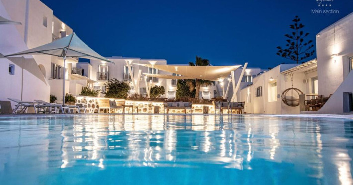 Situat la 800 de metri de centrul orașului Mykonos, Hotelul Aeolos oferă o piscină mare, cu facilități de hidromasaj, și camere elegante, cu WiFi gratuit. Intre orele 07:00 - 23:00 este disponibil un serviciu de transfer gratuit de la aeroport/port.