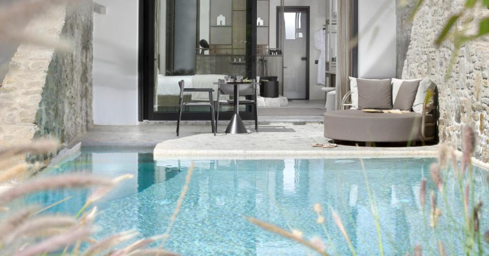 Aeonic Suites and Spa se află in orașul Mykonos, la 200 de metri de Korfos, și oferă cazare cu parcare privată gratuită, centru de fitness, piscină sezonieră in aer liber și grădină. Proprietatea are bar și terasă și este situată la mai puțin de 1 km de Ornos și la 18 minute de mers pe jos de plaja Korfos. La cazare, oaspeții au la dispoziție recepție cu program nonstop, serviciu de transfer de la/la aeroport, room service și WiFi gratuit.