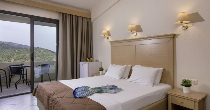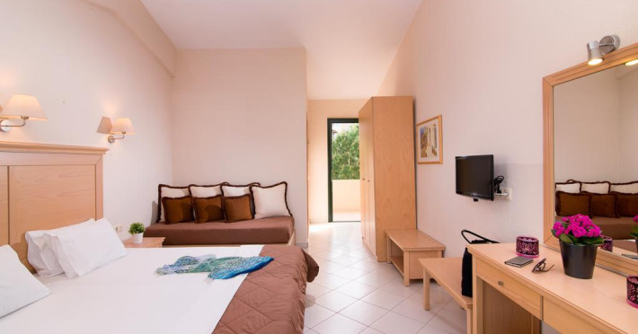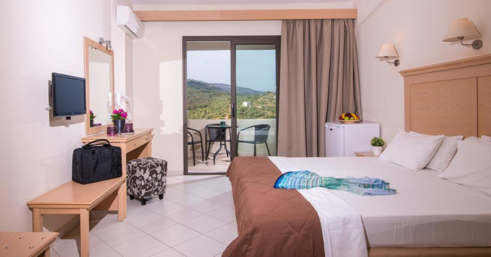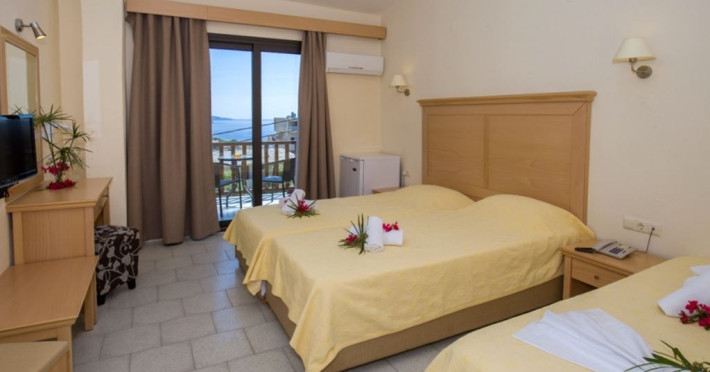 Sunt disponibile 57 camere. Camerele confortabile de la Aeria au pardoseală de gresie/ marmură, aer condiționat, Tv cu canale prin satelit și seif. În camere există baie cu cadă sau duș ce are în dotare foehn și articole de toaletă gratuite. Unele camere au balcon cu vedere la mare sau la grădină. Oaspeții au acces gratuit la serviciul Wi-fi în camere. Curățenia in cameră se face zilnic. Fiecare unitate de cazare are frigider. Proprietatea oferă camere pentru familie cu o suprafață mai mare și un număr mai mare de paturi față de cele standard.