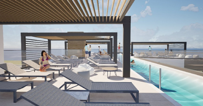 Facilitati hotel: Complexul este format dintr-o cladirea principala si anexa, punand la dispozitia oaspetilor o piscina pe acoperis cu terasa de relaxare si bar la piscina. Sezlongurile, umbrelele si prosoapele sunt gratuite la piscina.