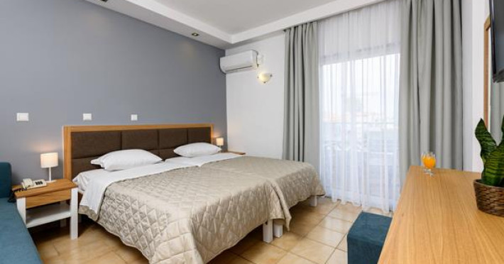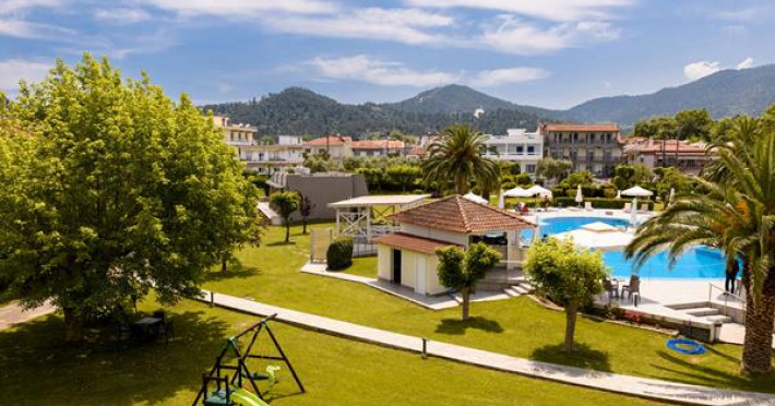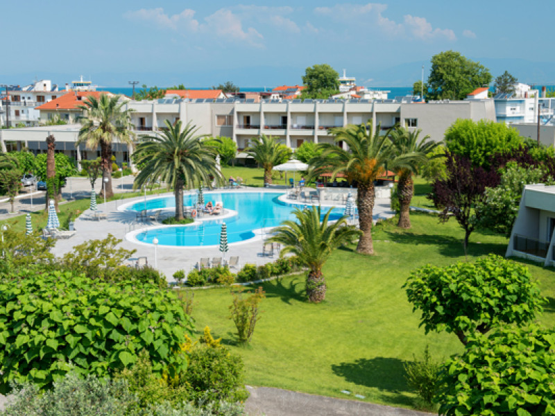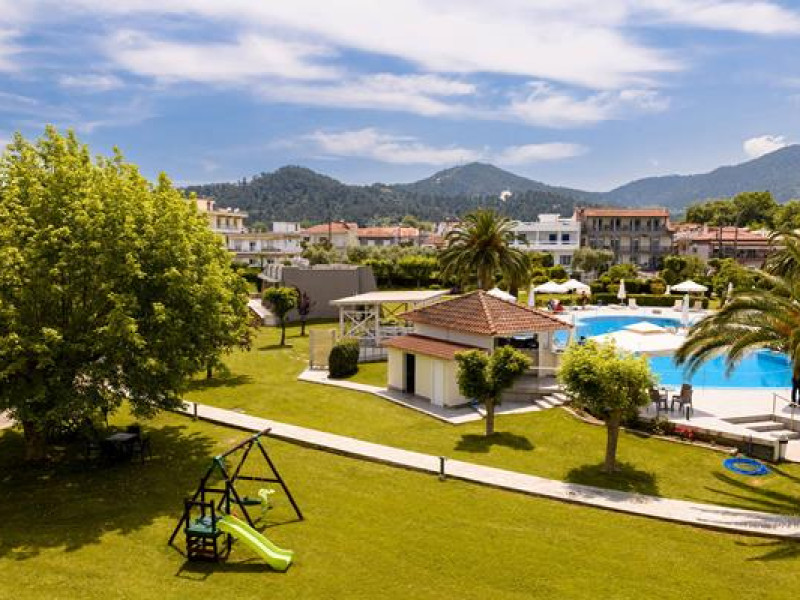 The hotel is located in the town of Thassos, also known as Limenas, built in a garden of 11,000 sq. meters, including a children's playground, tennis court, parking area, swimming-pool and pool-bar where clients can enjoy the sun while sipping exotic and refreshing cocktails.Full description