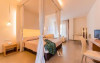 The luxurious hotel Afandou Bay Resort Suites enjoys a beautiful location, literally only steps away from the wonderful beach and the warm waters of the sea. The village centre of Afandou is within walking distance, and one of the most popular golf courses of Greece, the Afandou Golf Course, can also be reached within a short stroll. Faliraki with its host of restaurants, bars, tavernas, shops and nightlife spots is just a short drive away, while the medieval old town of Rhodes is at a distance of about 18 km. The small hotel offers luxury one- and two-bedroom apartments. They are bright, stylish and decorated in a chic, contemporary design. Excellent features include furnished balconies with garden and partial sea views. The hotel boasts a delightful garden area with lovely outdoor pool, surrounded by sun loungers and parasols. Guests can get pampered in the fantastic spa area. This magnificent hotel is a marvellous place for a sunny holiday surrounded by style.Datorita dinamicitatii domeniului disponibilitatea ofertelor se modifica de la un moment la altul. De aceea ofertele sunt valabile in limita locurilor disponibile. Agentia nu este responsabila pentru eventualele neconcordante care pot aparea intre informatiile privind tarifele si alte detalii din site si informatiile primite in agentie. In aceste cazuri vor avea prioritate, intotdeauna, informatiile primite in agentie.