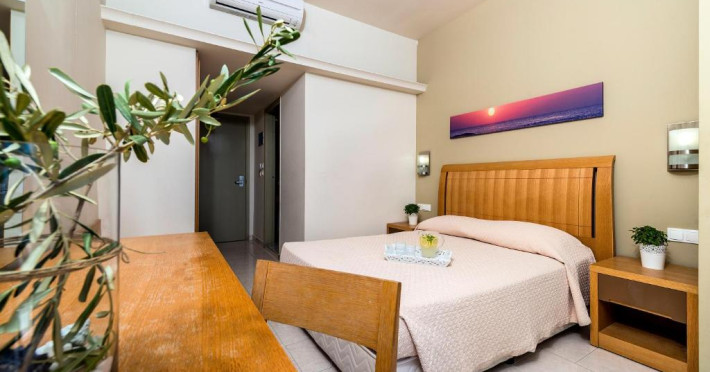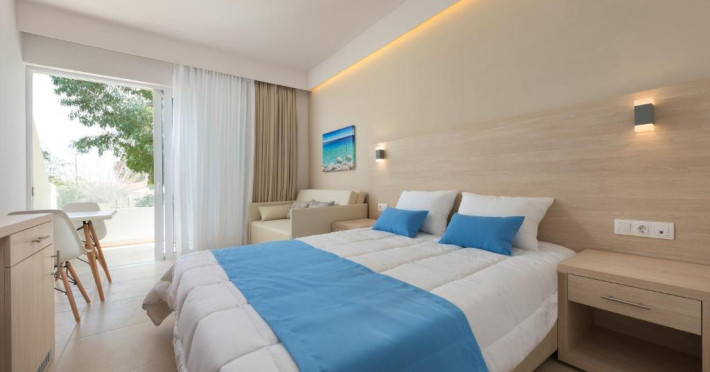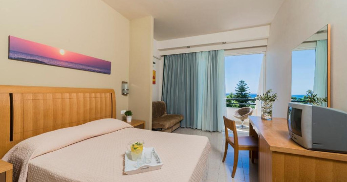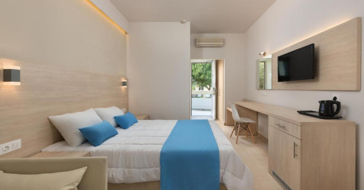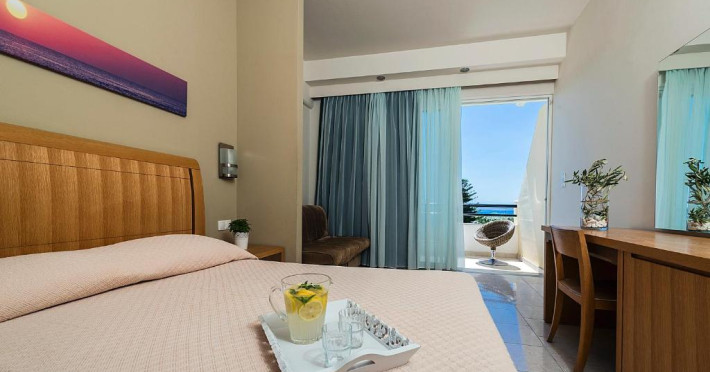 Sunt disponibile 116 camere. Camerele luminoase de la Afandou Beach sunt dotate cu aer condiționat și Tv cu canale prin satelit. În camere există baie cu duș prevăzută cu foehn. Unele camere au balcon cu vedere la mare sau la grădină. Oaspeții au acces gratuit la serviciul Wi-fi în camere. Fiecare unitate de cazare are frigider.