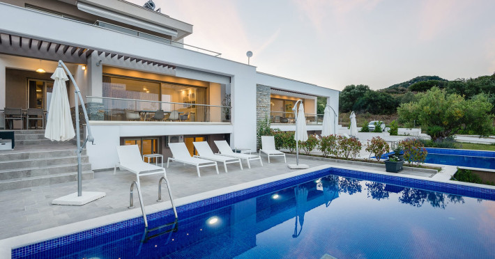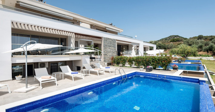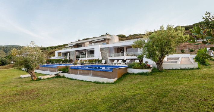 Afisia villas are 6 luxury villas with private pool located in Sarti,Halkidiki. There are 2 types of villas, Magnum villa can accommodate up to 9 guests in beds and Parvus villas can accommodate up to 7 guests in beds.Datorita dinamicitatii domeniului disponibilitatea ofertelor se modifica de la un moment la altul. De aceea ofertele sunt valabile in limita locurilor disponibile. Agentia nu este responsabila pentru eventualele neconcordante care pot aparea intre informatiile privind tarifele si alte detalii din site si informatiile primite in agentie. In aceste cazuri vor avea prioritate, intotdeauna, informatiile primite in agentie.