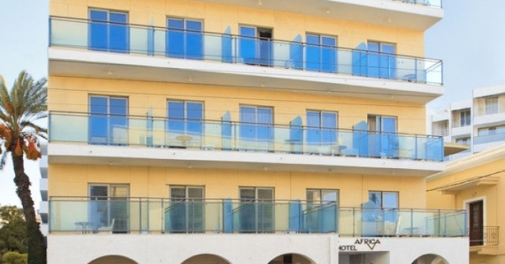 Africa Hotel se află situat pe partea vestică orașului Rhodos, la doar 9 minute de mers pe jos de plajă cu nisip auriu. Castelul Cavalerilor Ioaniţi este la 15 minute de mers pe jos, iar acvariul la mai puţin de 10 minute. La aproximativ 50 de metri de hotel se găsește o staţie de autobuz care asigură conexiune cu Aeroportul Internaţional Diagoras din Rodos, situat la 14 km.