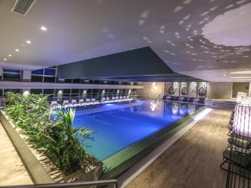Hotelul dispune de 220 de camere distribuite pe 10 etaje, restaurant, Spa pe aproape 2500 mp, piscina, jacuzzi, saune, sala fitness, baza de tratament, loc de joaca pentru copii, sali de conferinta, parcare publica.